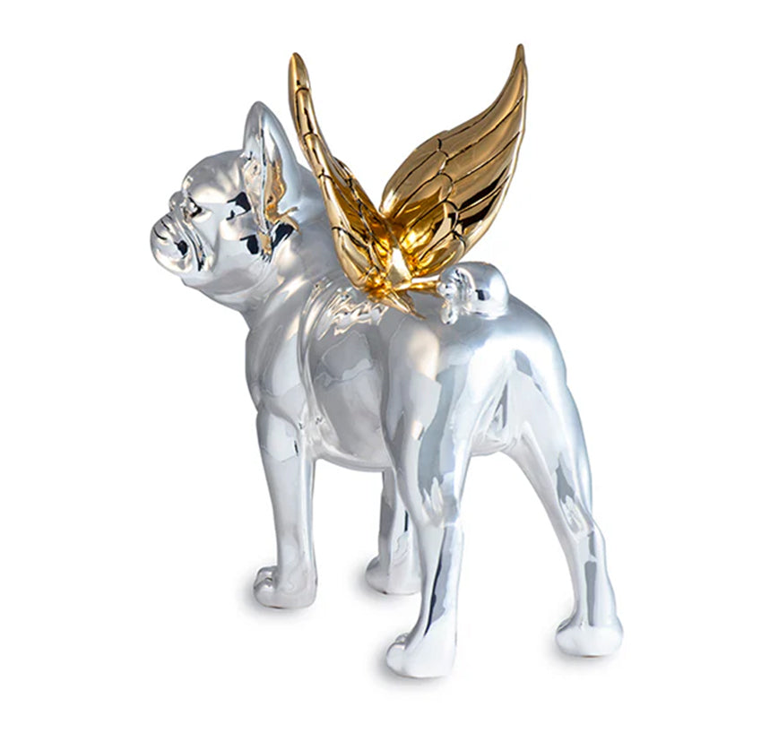 Chrome Edition takes flight with Winged Watcher, crafted for luxury home decor. This chrome-finished French Bulldog stands poised with unmistakable canine confidence and a sharp, modern edge.